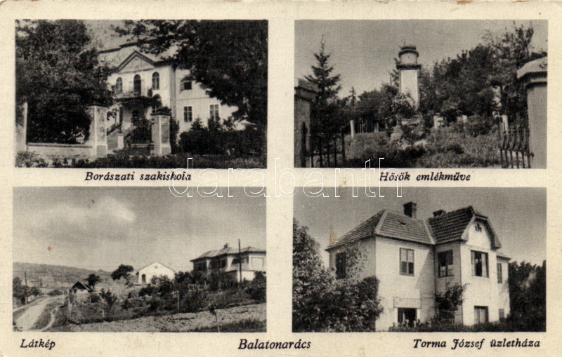 Balatonarács borászati szakiskola, Torma József üzletháza, hősi emlékm... https://www.darabanth.com/de/168-Fernauktion/168.0/Ansichtskarten/Ungarn~2000256/Balatonaracs-boraszati-szakiskola-Torma-Jozsef-uzlethaza-hosi-emlekmu~II561469