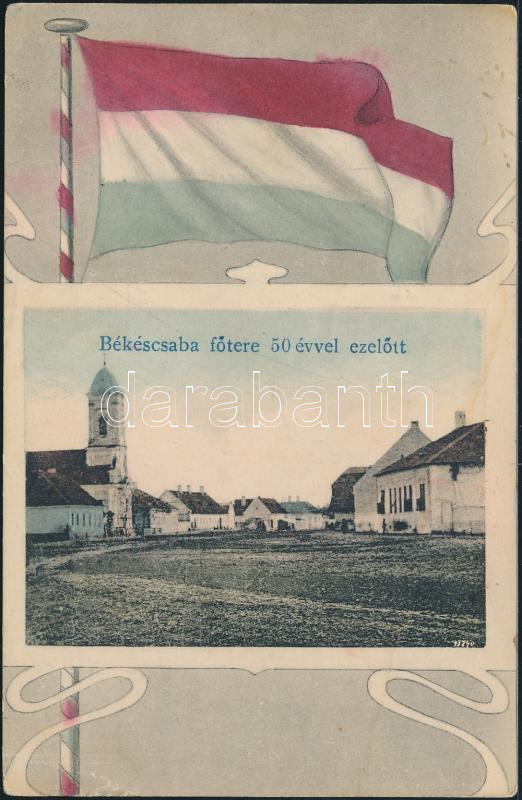 Békéscsaba Fő tere 50 évvel ezelőtt, országzászló (EK) https://www.darabanth.com/de/168-Fernauktion/168.0/Ansichtskarten/Ungarn~2000256/Bekescsaba-Fo-tere-50-evvel-ezelott-orszagzaszlo-EK~II563048