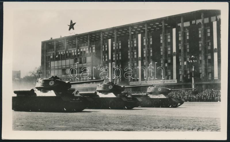 Budapest 1956. április 4. Dísszemle https://www.darabanth.com/de/168-Fernauktion/168.0/Ansichtskarten/Ungarn~2000256/Budapest-1956-aprilis-4-Disszemle~II564172