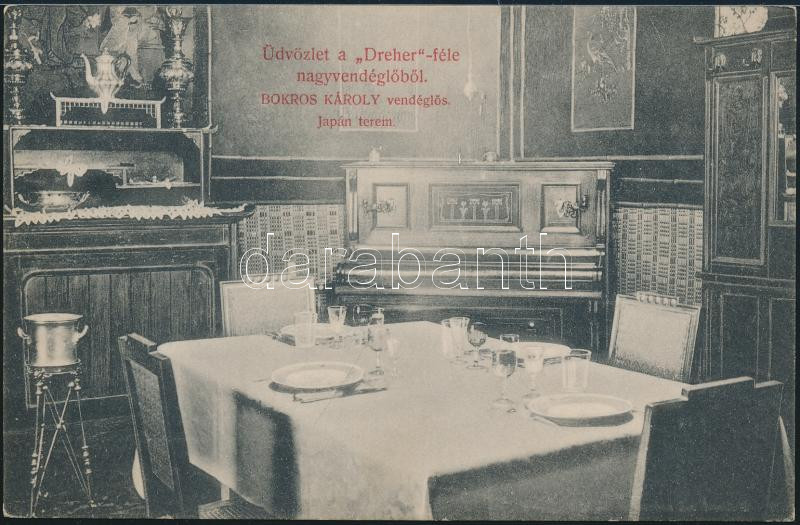 Budapest Bokros Károly Dreher-féle Nagyvendéglője, Japán terem https://www.darabanth.com/de/168-Fernauktion/168.0/Ansichtskarten/Ungarn~2000256/Budapest-Bokros-Karoly-Dreher-fele-Nagyvendegloje-Japan-terem~II563674