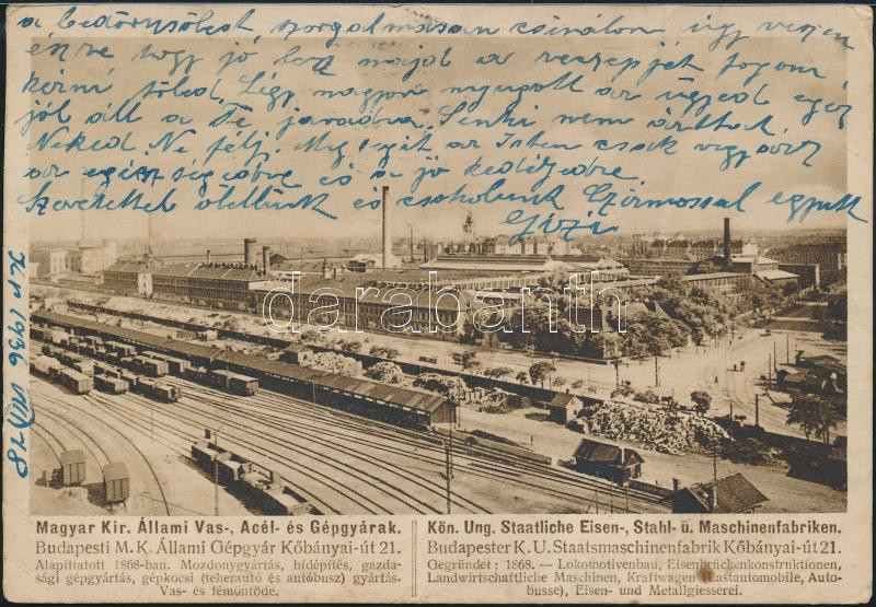 Budapest VIII. Kőbányai út, Állami Vas-, Acél- és Gépgyárak (fl) https://www.darabanth.com/de/168-Fernauktion/168.0/Ansichtskarten/Ungarn~2000256/Budapest-VIII-Kobanyai-ut-Allami-Vas--Acel-es-Gepgyarak-fl~II563151