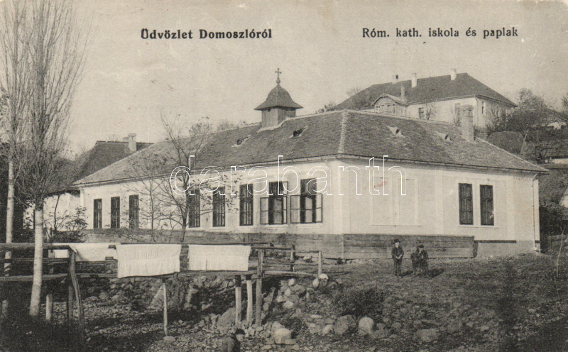 Domoszló Római katolikus iskola és paplak (fa) https://www.darabanth.com/de/168-Fernauktion/168.0/Ansichtskarten/Ungarn~2000256/Domoszlo-Romai-katolikus-iskola-es-paplak-fa~II563500