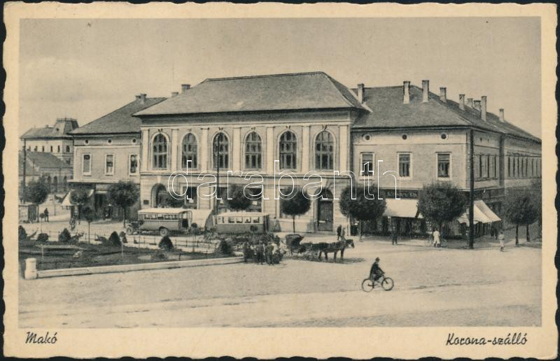 Makó Korona szálloda autóbusszal https://www.darabanth.com/de/168-Fernauktion/168.0/Ansichtskarten/Ungarn~2000256/Mako-Korona-szalloda-autobusszal~II565634