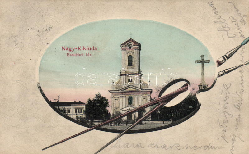 Beschreibung: Nagykikinda Erzsébet square, church, palette
