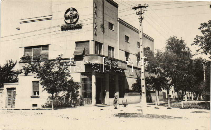 Beschreibung: Verbász pharmacy with Hungarian BAYER advertising