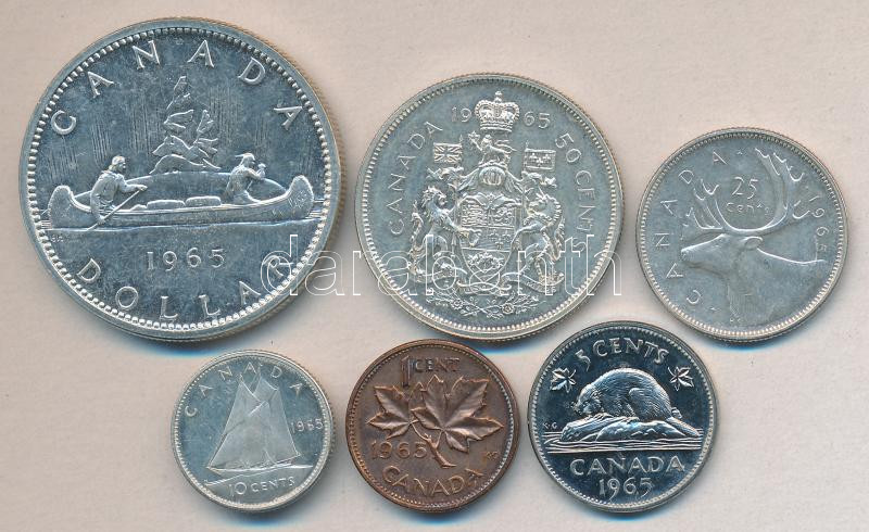 Kanada 1965. 1c, 5c, 10c Ag, 25c Ag, 50c Ag, 1$ Ag "Kenu" T:1-,2,PP Canada 1965. 1 cent, 5 cent, 10 cent Ag, 25 cent Ag, 50 cent Ag, 1 Dollar Ag "Canoe" C:AU,XF,PP