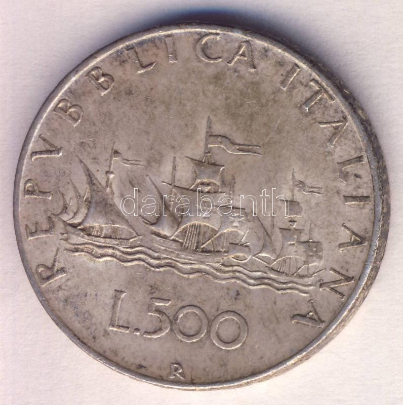 Italy 1958R 5... https://www.darabanth.com/de/168-Fernauktion/168.0/Numismatik/Auslandische-Munzen~2000358/Olaszorszag-1958R-500L-Ag-Kolumbusz-hajoja-T2-patina-3Cbr3EItaly-1958R-500-Lire-Ag-Columbuss~II564530
