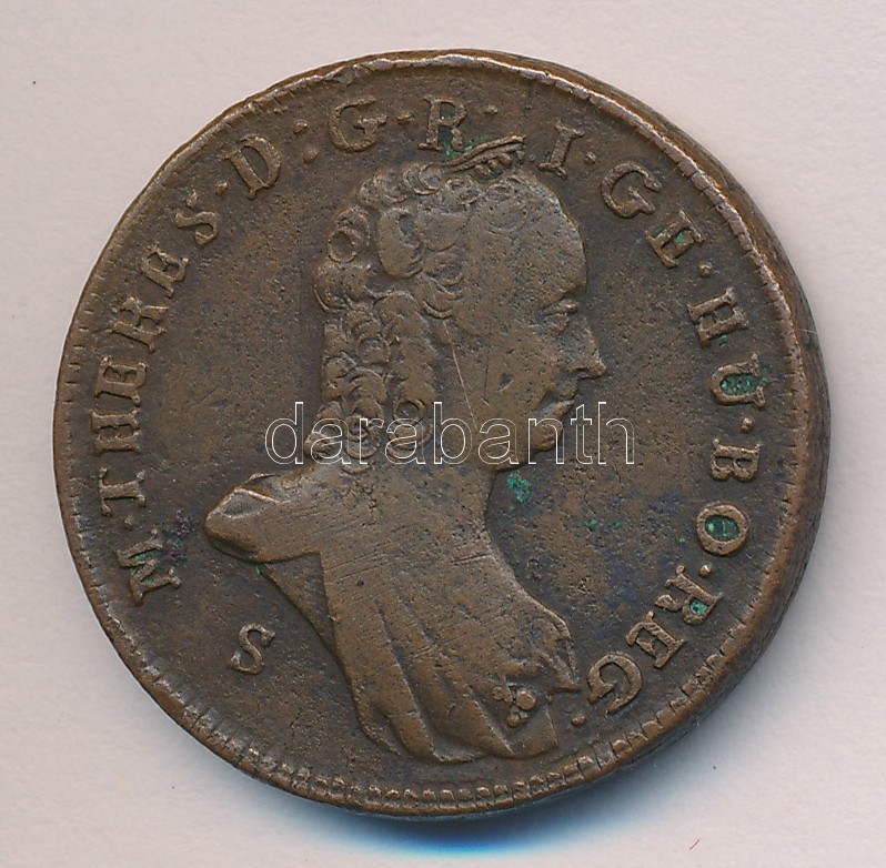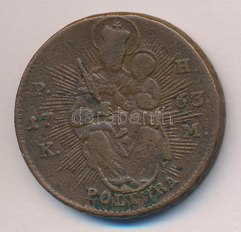 1763S PH-KM Poltura Cu "Mária Terézia" T:2-/3 https://www.darabanth.com/de/168-Fernauktion/168.0/Numismatik/Ungarische-Munzen~2000354/1763S-PH-KM-Poltura-Cu-Maria-Terezia-T2-3~II563951