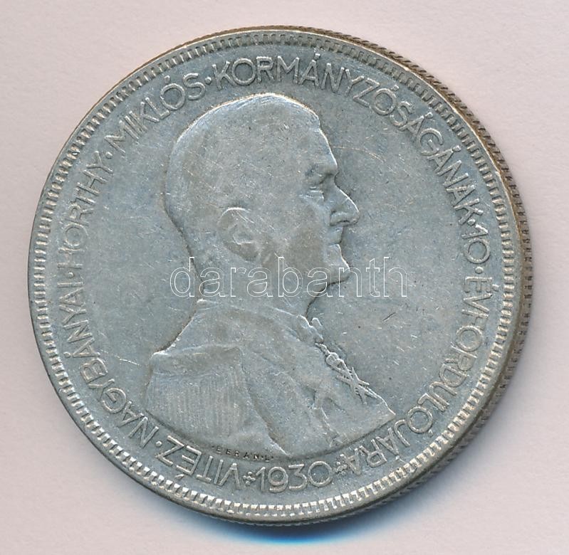 1930. 5P Ag "Horthy-jobbra" T:3 https://www.darabanth.com/de/168-Fernauktion/168.0/Numismatik/Ungarische-Munzen~2000354/1930-5P-Ag-Horthy-jobbra-T3~II563512
