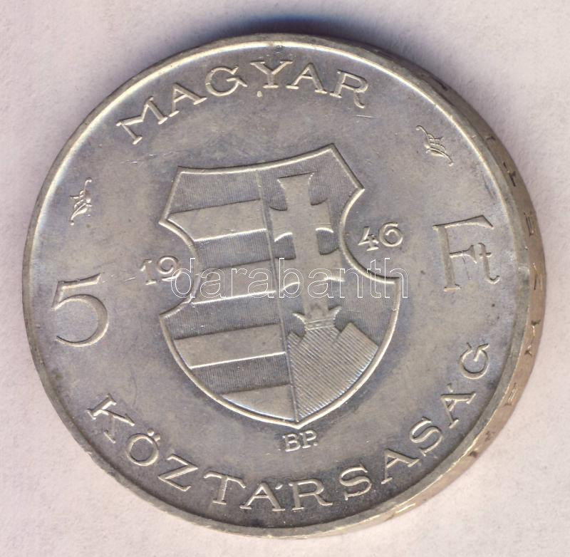 1946. 5Ft Ag "vastag Kossuth" T:2 ph. https://www.darabanth.com/de/168-Fernauktion/168.0/Numismatik/Ungarische-Munzen~2000354/1946-5Ft-Ag-vastag-Kossuth-T2-ph-3Cbr3E~II545158