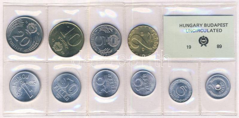 1989. 2f-20Ft 10db klf érmés forgalmi sor fóliatokban T:1 https://www.darabanth.com/de/168-Fernauktion/168.0/Numismatik/Ungarische-Munzen~2000354/1989-2f-20Ft-10db-klf-ermes-forgalmi-sor-foliatokban-T1~II565965