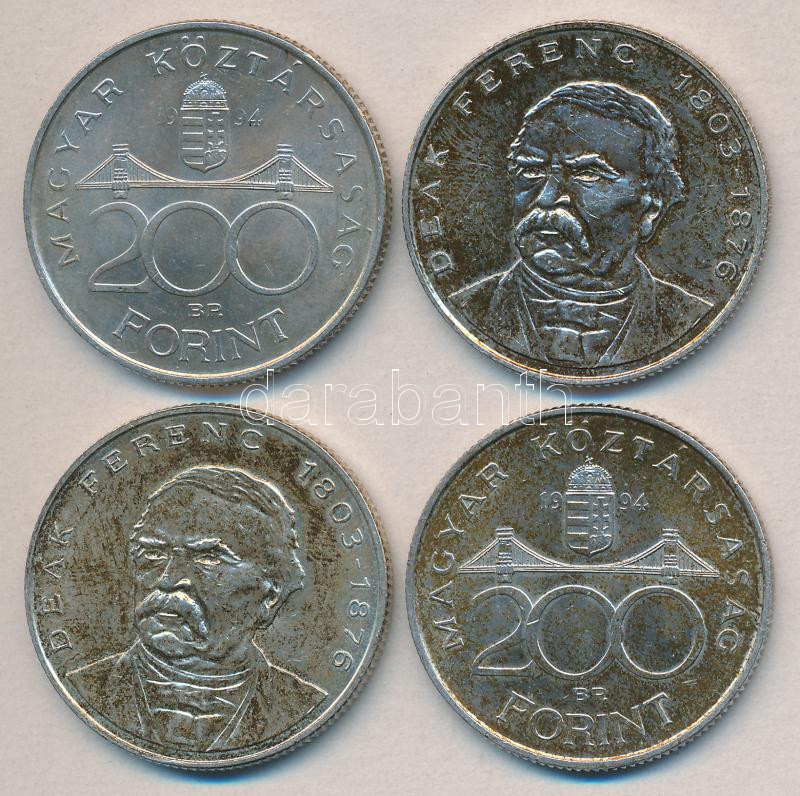 1994. 200Ft Ag "Deák" (4x) T:2 https://www.darabanth.com/de/168-Fernauktion/168.0/Numismatik/Ungarische-Munzen~2000354/1994-200Ft-Ag-Deak-4x-T2~II562618