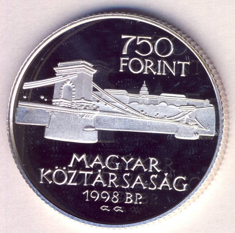 Beschreibung: 1998. 750Ft Ag "Budapest egyesítésének 125. évfordulója" T:PP