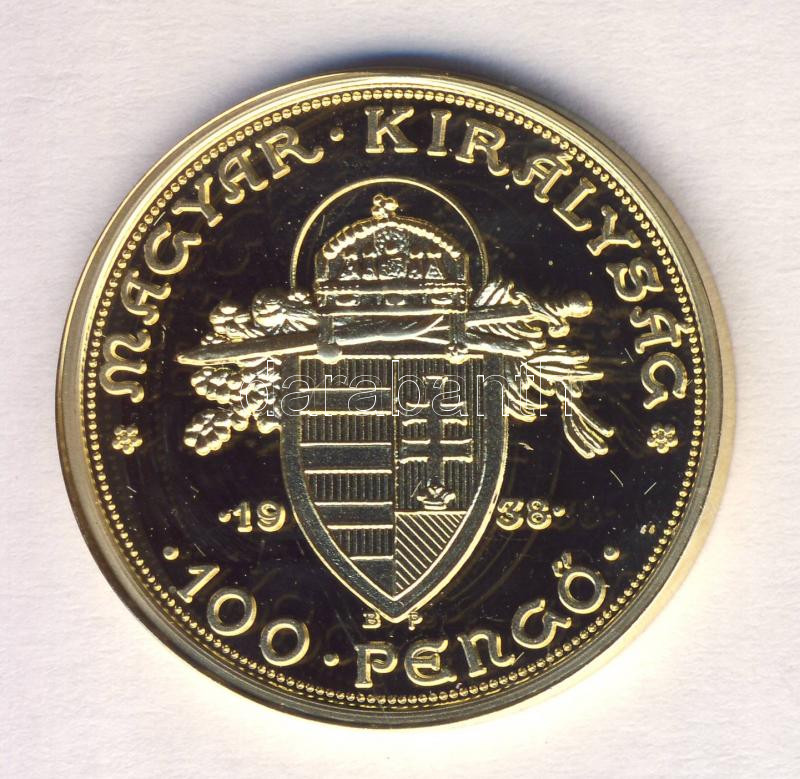 "Magyar aranypénzek utánveretben - Szent István jubileumi 100 pengő" a... https://www.darabanth.com/de/168-Fernauktion/168.0/Numismatik/Ungarische-Munzen~2000354/Magyar-aranypenzek-utanveretben--Szent-Istvan-jubileumi-100-pengo-aranyozott-Ag0999-emlek~II561343