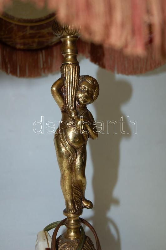 Beschreibung: Régi antik stílusú asztali lámpa réz állvánnyal és bőr burával (a burán szakadás!) /