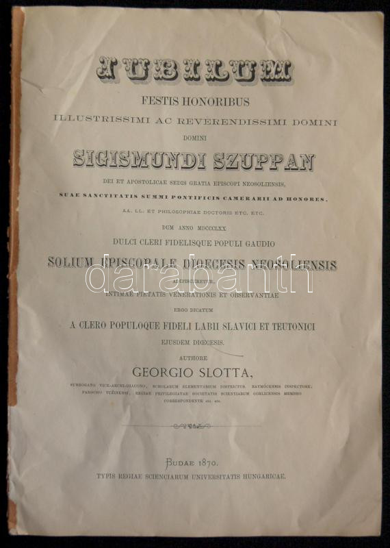 Georgio Slotta: Jubilum festis honoribus... Sigismundi Szuppan... Buda... https://www.darabanth.com/de/169-Fernauktion/169.0/Andere-Sammelgebiete/Bucher-Geschichte~4000028/Georgio-Slotta-Jubilum-festis-honoribus-Sigismundi-Szuppan-Budaem-1870-Egyetemi-Nyomda-16p~II497585