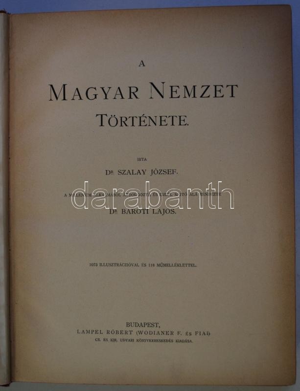 Szalay József-Baróti Lajos: A magyar nemzet története. IV. köt. Bp. 1895-1898, Lampel. Rendkívül gazdag képanyaggal. Kiadói, festett, dombornyomott egészvászon-kötésben (gerincen kis sérülés)