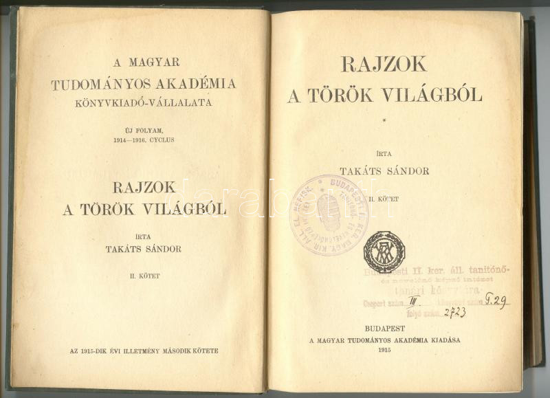 Takáts Sándor: Rajzok a török világból I.-II. kötet. Bp., 1915. MTA. 4... https://www.darabanth.com/de/169-Fernauktion/169.0/Andere-Sammelgebiete/Bucher-Geschichte~4000028/Takats-Sandor-Rajzok-a-torok-vilagbol-I-II-kotet-Bp-1915-MTA-440p-plus-468p-Aranyozott-~II536756