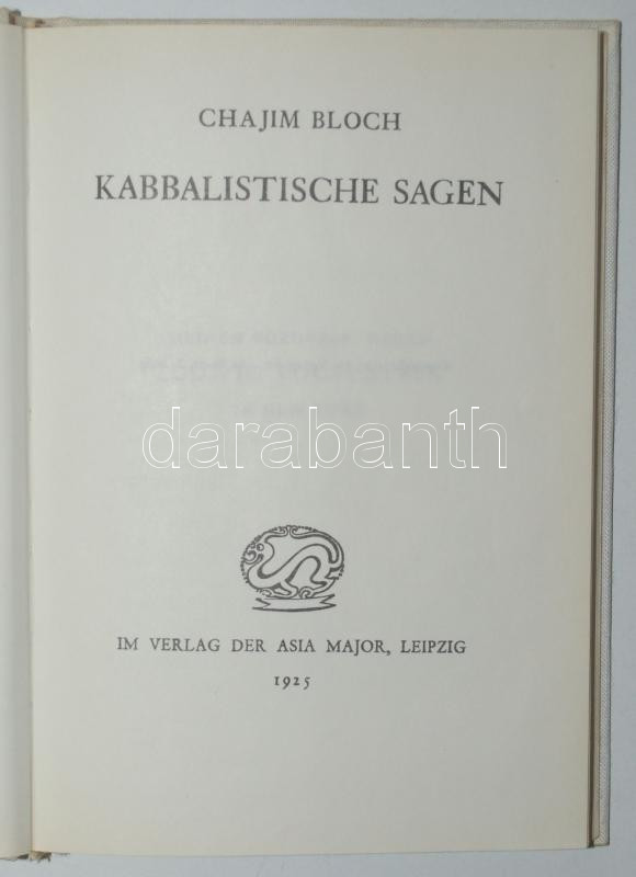 Chajim Bloch: Kabbalistische Sagen. Leipzig, 1925, Asia Major. Reprint... https://www.darabanth.com/de/169-Fernauktion/169.0/Andere-Sammelgebiete/Bucher-Judaica~4000035/Chajim-Bloch-Kabbalistische-Sagen-Leipzig-1925-Asia-Major-Reprint-Egeszvaszon-kotesben--~II571137