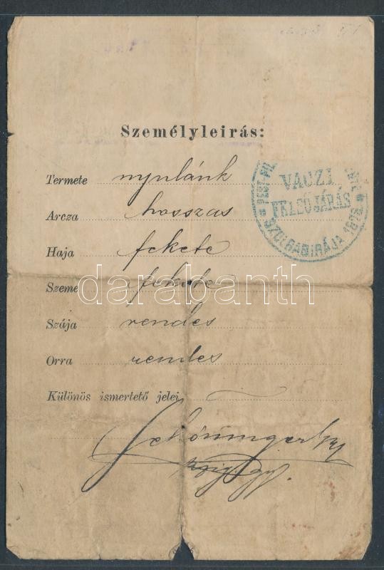Beschreibung: 1891 Igazolási jegy vályogvető részére / ID