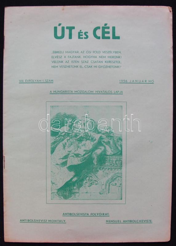 1956 Az Út és cél c hungarista lap januári száma szamizdat kiadás https://www.darabanth.com/de/169-Fernauktion/169.0/Andere-Sammelgebiete/Drucksachen~4000025/1956-Az-Ut-es-cel-c-hungarista-lap-januari-szama-szamizdat-kiadas~II548223