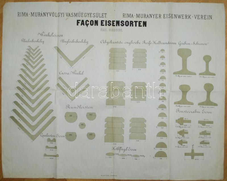 cca 1870 A Rimamurányi vasmű, vasfajták ismertetője / Sorts of irons 6... https://www.darabanth.com/de/169-Fernauktion/169.0/Andere-Sammelgebiete/Drucksachen~4000025/cca-1870-A-Rimamuranyi-vasmu-vasfajtak-ismertetoje-Sorts-of-irons-60x47-cm~II567602