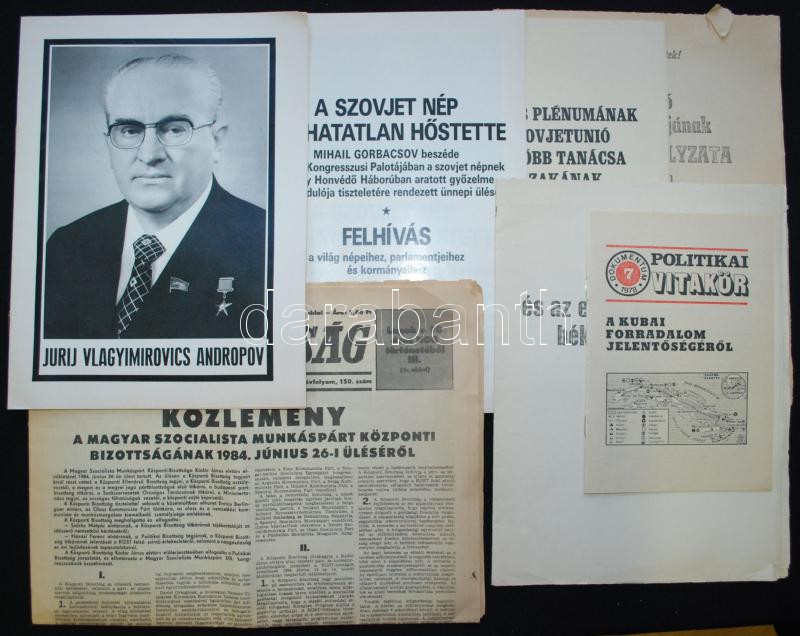 cca 1960-1984 Andropov halála, Gorbacsov beszéde 9 db propaganda kiadv... https://www.darabanth.com/de/169-Fernauktion/169.0/Andere-Sammelgebiete/Drucksachen~4000025/cca-1960-1984-Andropov-halala-Gorbacsov-beszede-9-db-propaganda-kiadvany~II567123
