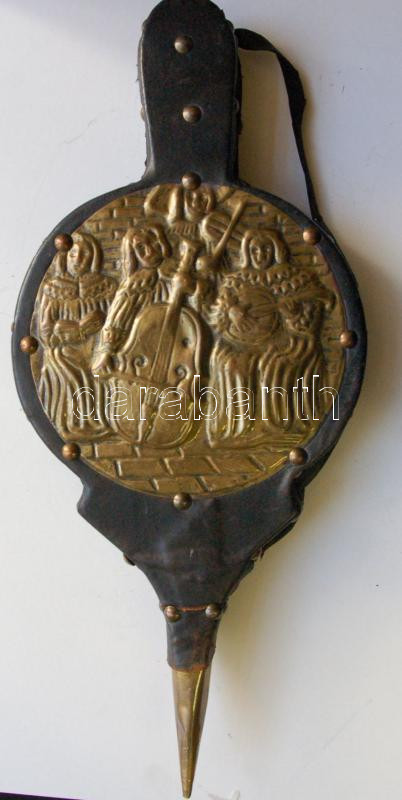Bőr fújtató réz domborművel díszítve /