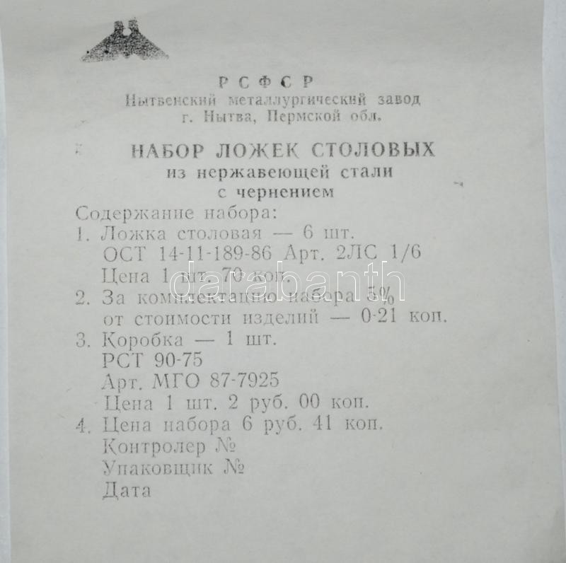CCa 1960 orosz 6db ezüstözött kanál, gazdagon díszítve, jelzett, kis s... https://www.darabanth.com/de/169-Fernauktion/169.0/Andere-Sammelgebiete/Flohmarkt~4000011/CCa-1960-orosz-6db-ezustozott-kanal-gazdagon-diszitve-jelzett-kis-szakadas-a-diszdobozon~II566140