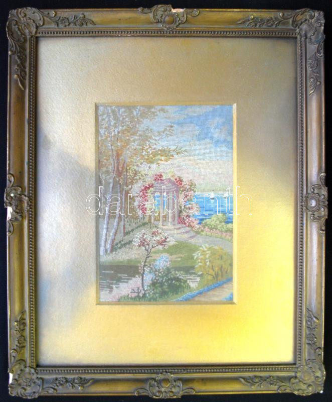 Beschreibung: Mediterrán gobelin kép, apró hiba a kereten 33×27 cm