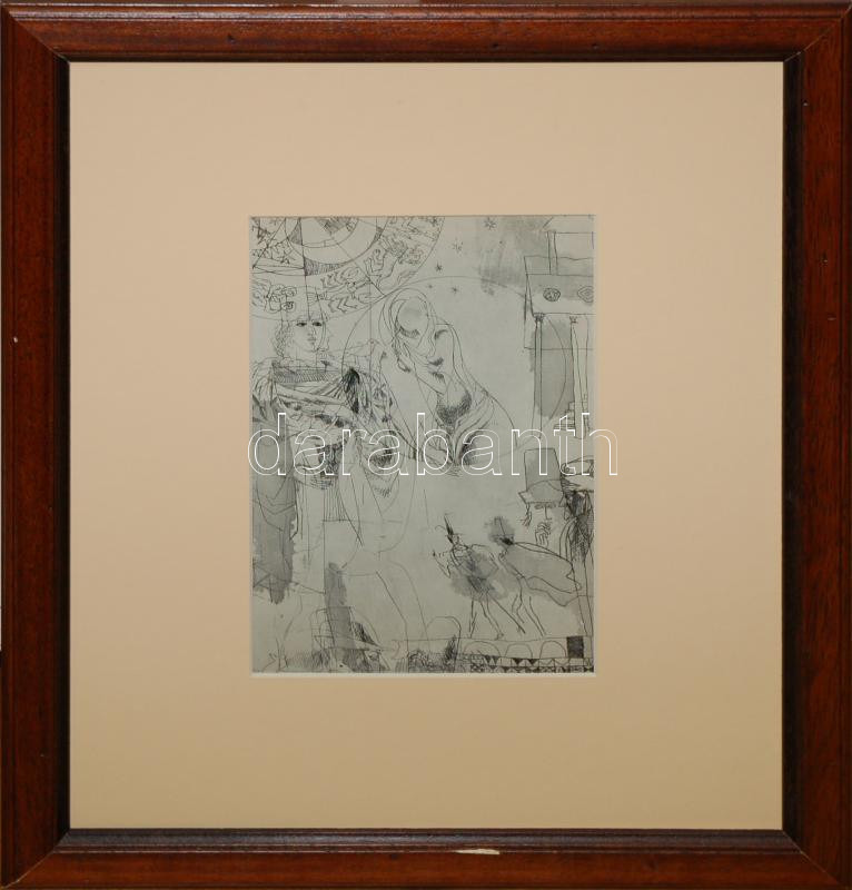 Beschreibung: Jelzés nélkül, Würtz Ádám (1927-1994): Illusztráció, rézkarc, papír,apró hiba a kereten 22×14 cm
