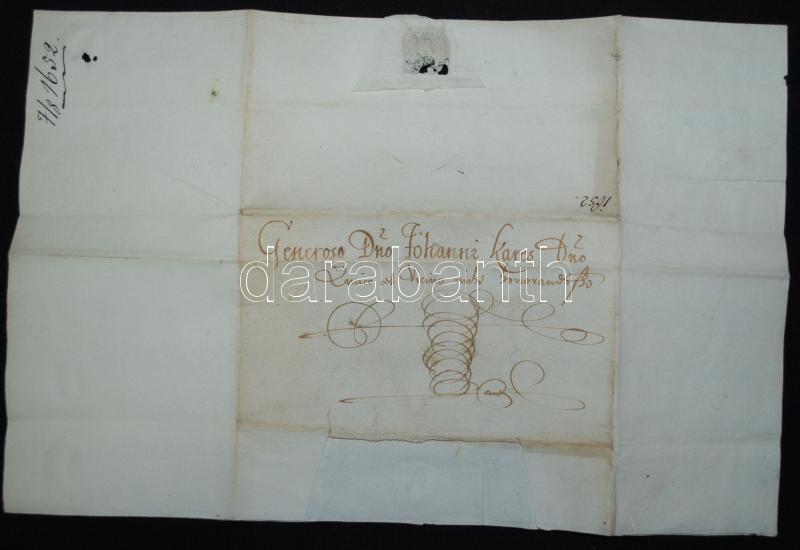 1652 Beniczky Gabriel Túrócz megyei főúr latin nyelvű levele hiányos szárazpecséttel