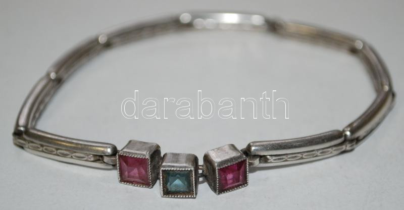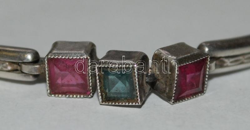 Art deco silver bracelet with colored glasses, br: 9,4gr