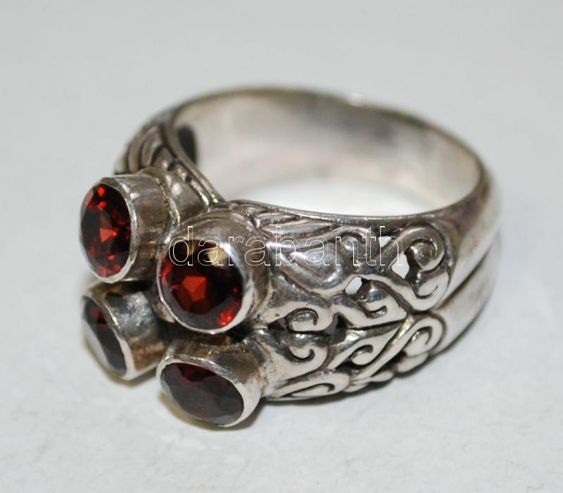 Ezüst (Ag) gyűrű gránátokkal díszítve /