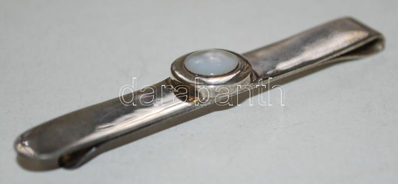 Beschreibung: Ezüst (Ag) nyakkendőcsipesz gyöngyház lencsével /