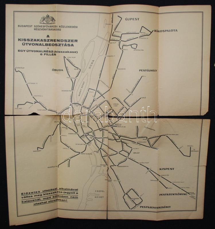 1932 BSZKRT Budapestt kisszakaszrendszer útvonalbeosztási és utazási r... https://www.darabanth.com/de/169-Fernauktion/169.0/Andere-Sammelgebiete/Landkarte~4000024/1932-BSZKRT-Budapestt-kisszakaszrendszer-utvonalbeosztasi-es-utazasi-rendje-terkep-szakadt-3~II569141