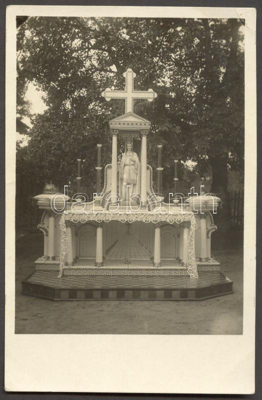 Beschreibung: 1930 Hász István (1884-1973) tábori püspök aláírása képeslapon a péceli Szent Imre oltár szentelésekor