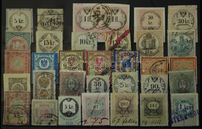 Beschreibung: 33 db magyar okmány- és illetékbélyeg