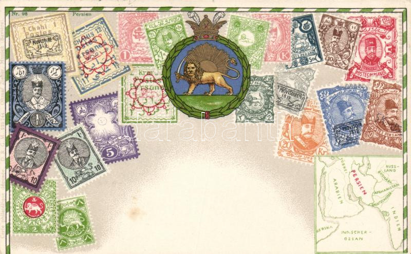 Set of stamps, Persia litho https://www.darabanth.com/de/169-Fernauktion/169.0/Ansichtskarten/Briefmarke~4000083/Set-of-stamps-Persia-litho~II530868