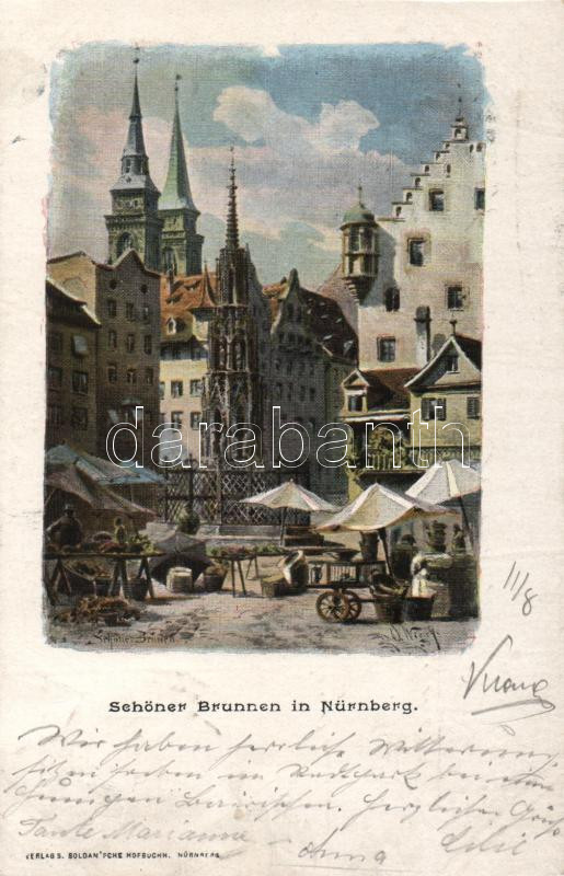 1898 Nürnberg, Schöner Brunner / Beautiful Fountain, market https://www.darabanth.com/de/169-Fernauktion/169.0/Ansichtskarten/Deutschland~4000071/1898-Nurnberg-Schoner-Brunner-Beautiful-Fountain-market~II529319