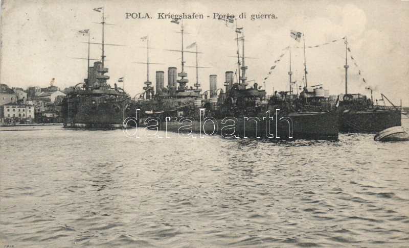 Pola naval port, warships https://www.darabanth.com/de/169-Fernauktion/169.0/Ansichtskarten/Kroatien~500009/Pola-naval-port-warships~II567324