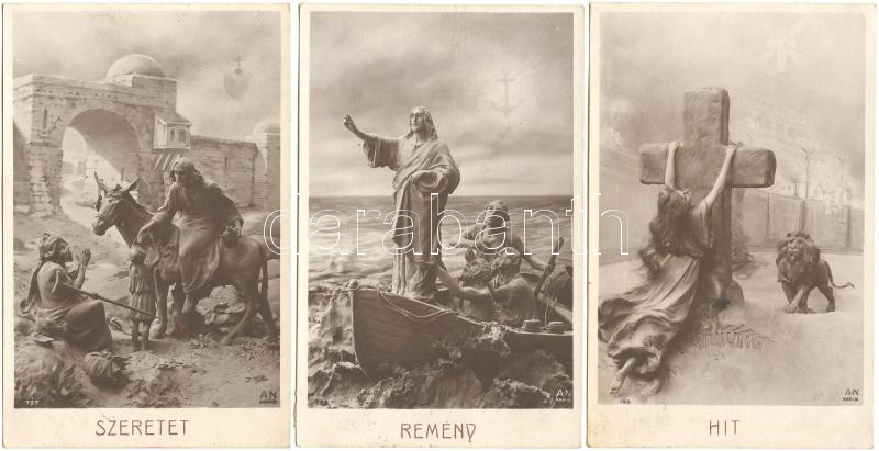 1913 Hit, Remény, Szeretet - 3 db régi áhítatos képeslap https://www.darabanth.com/de/169-Fernauktion/169.0/Ansichtskarten/Postkarten~500002/1913-Hit-Remeny-Szeretet--3-db-regi-ahitatos-kepeslap~II510894