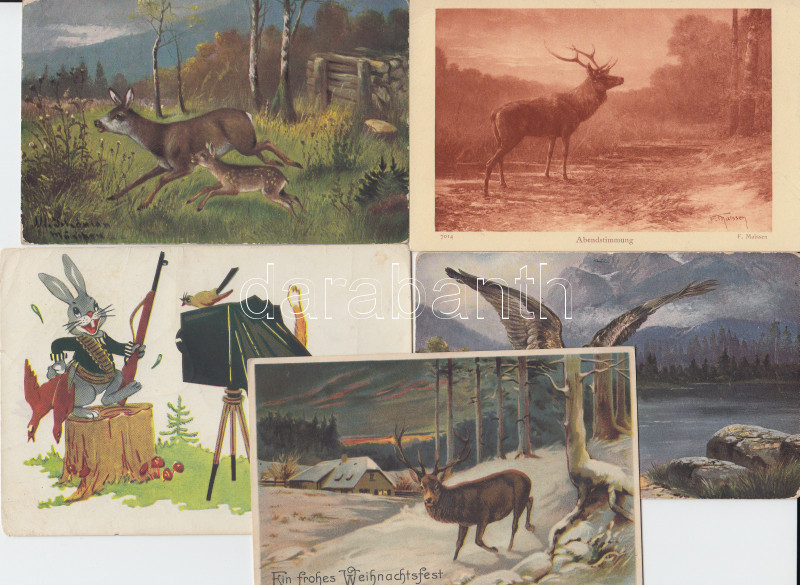 5 db háború előtti motívumlap a vadászat témaköréből, közte litho https://www.darabanth.com/de/169-Fernauktion/169.0/Ansichtskarten/Postkarten~500002/5-db-haboru-elotti-motivumlap-a-vadaszat-temakorebol-kozte-litho~II568061