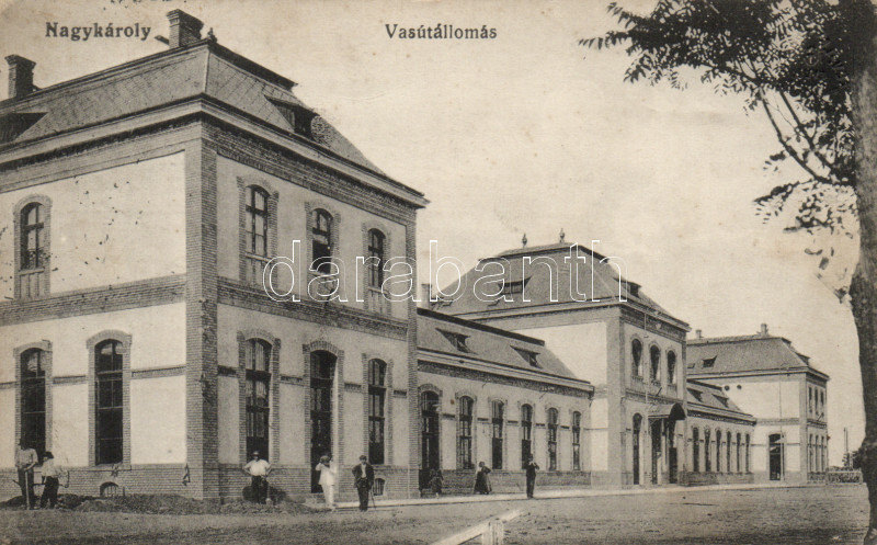 Nagykároly Railway station (EK) https://www.darabanth.com/de/169-Fernauktion/169.0/Ansichtskarten/Siebenburgen~500006/Nagykaroly-Railway-station-EK~II567901