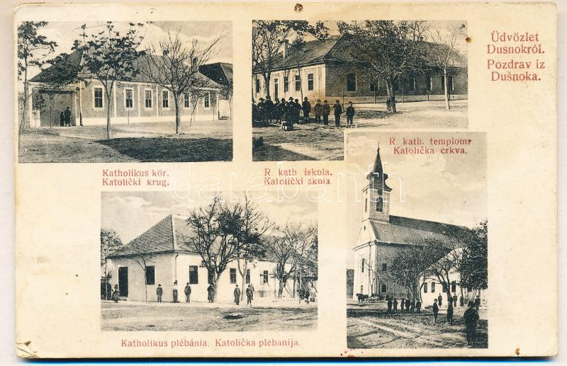 Dusnok Katolikus plébánia, iskola és templom (b) https://www.darabanth.com/de/169-Fernauktion/169.0/Ansichtskarten/Ungarn~500005/Dusnok-Katolikus-plebania-iskola-es-templom-b~II566985