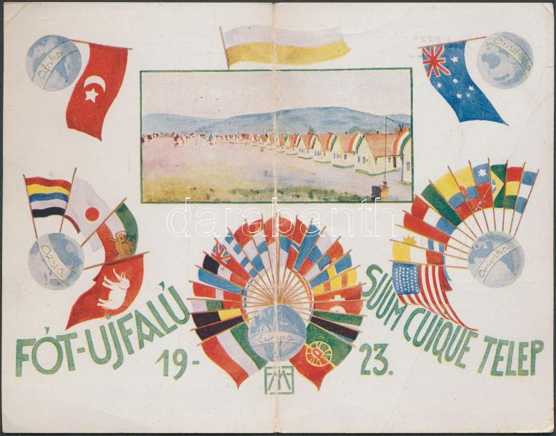 Fót-Újfalu Suum Cuique telep folding card (fa) https://www.darabanth.com/de/169-Fernauktion/169.0/Ansichtskarten/Ungarn~500005/Fot-Ujfalu-Suum-Cuique-telep-folding-card-fa~II507485