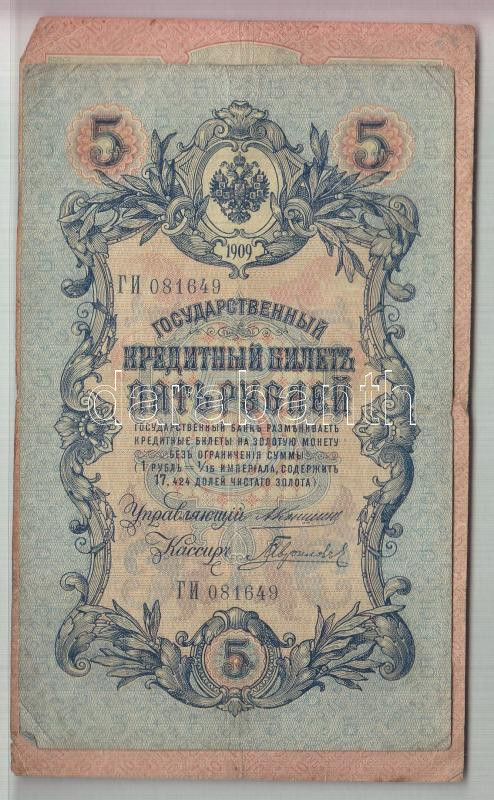 Russia 1909-12. 5 R... https://www.darabanth.com/de/169-Fernauktion/169.0/Numismatik/Auslandische-Banknoten~4000132/Oroszorszag-1909-12-5R-plus-10R-szignKonshin-TIII-3Cbr3ERussia-1909-12-5-Rubles-plus-10-Rubles-sign~II482572