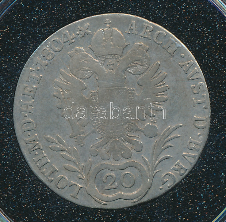 Austria 1804C 20 Kre... https://www.darabanth.com/de/169-Fernauktion/169.0/Numismatik/Auslandische-Munzen~4000133/Ausztria-1804C-20Kr-Ag-II-Ferenc-T3-3Cbr3EAustria-1804C-20-Kreuzer-Ag-Franz-II-CF~II567510