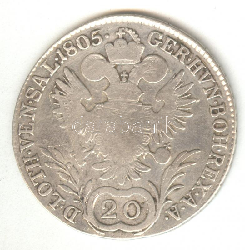 Ausztria/magyar verdejel 1805B 20Kr Ag II.Ferenc T:3 https://www.darabanth.com/de/169-Fernauktion/169.0/Numismatik/Auslandische-Munzen~4000133/Ausztriamagyar-verdejel-1805B-20Kr-Ag-IIFerenc-T3~II567705
