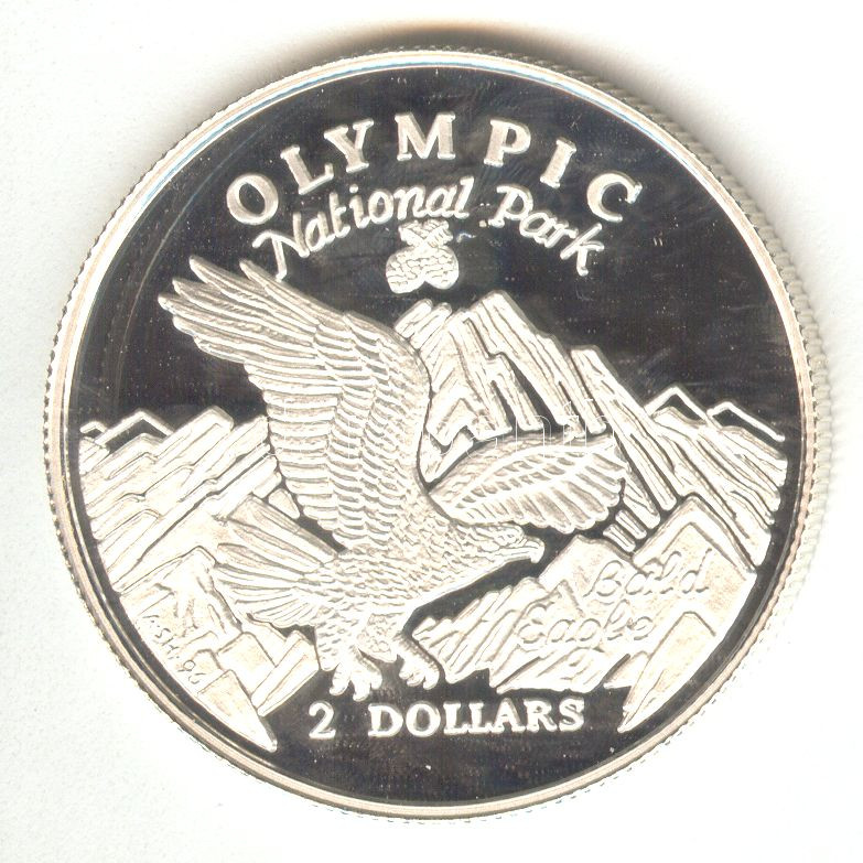 Cook-Islands 1996. 2 Dollars Ag "Olympic National Park" C:PP With ertificate